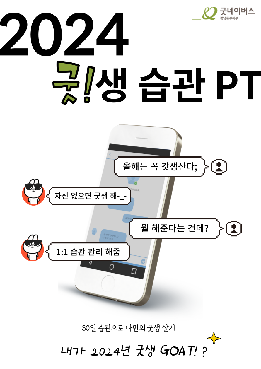 - 새해 굿생 트레이너, 김굿생과 함께 하는 꾸준한 30일 1:1 굿생 PT
