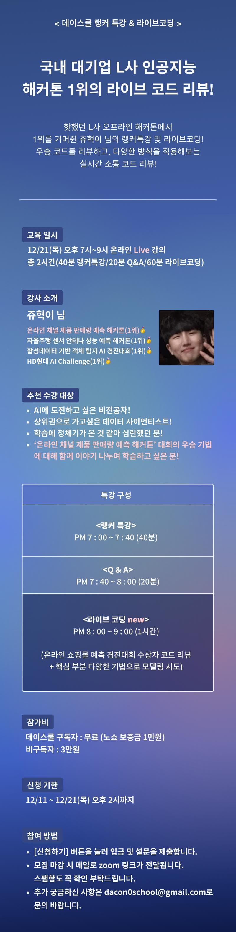 12/21(목) 오후 7시~9시 온라인 Live 강의