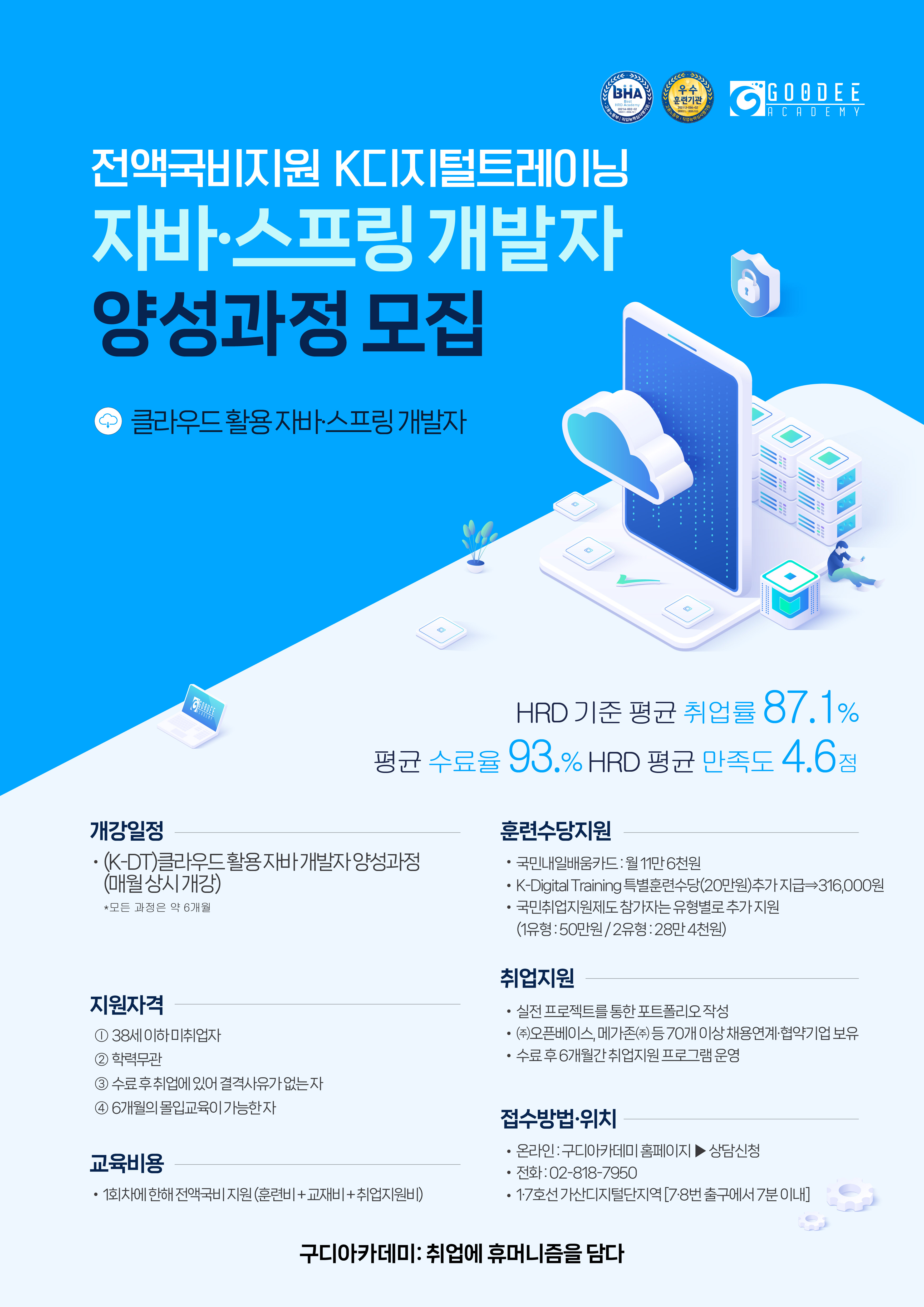 [웹개발자 국비지원] 웹기초부터 개발자과정까지 교육 받고 취업지원까지!(베스트직업훈련기관 구디아카데미)