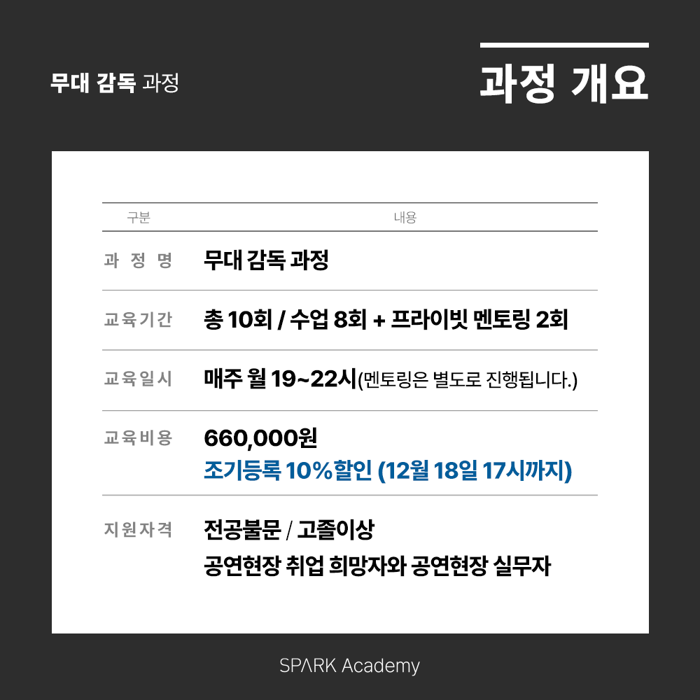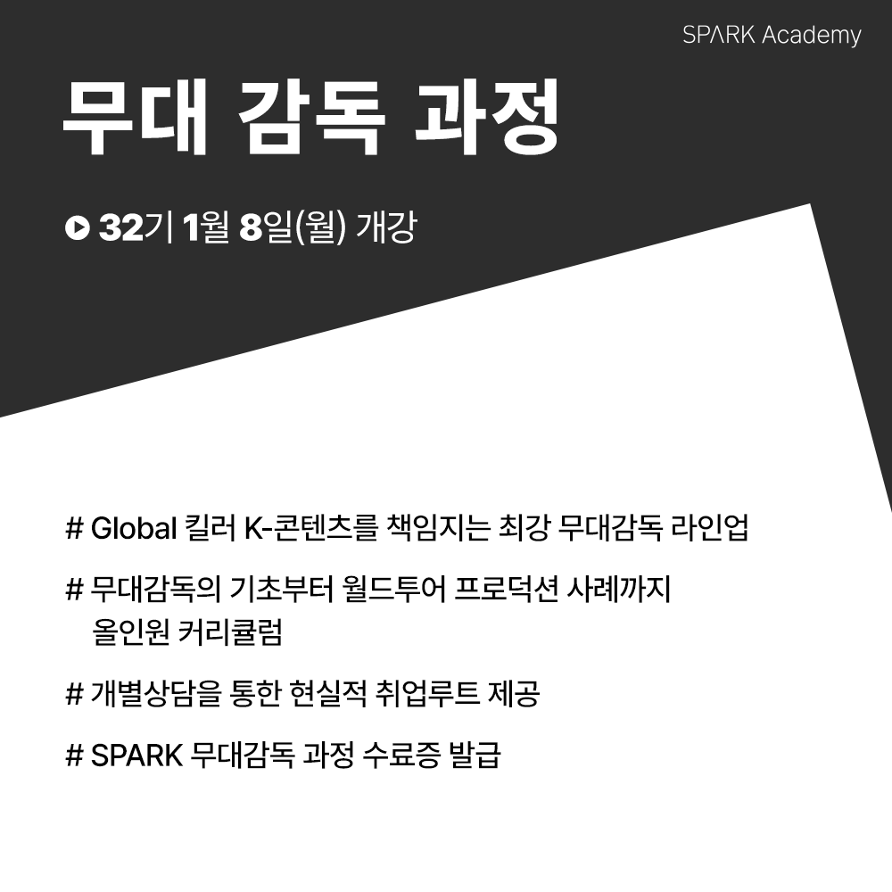 * 무대감독 과정은 SPARK의 프로듀싱 과정과 통합클래스로 운영됩니다.