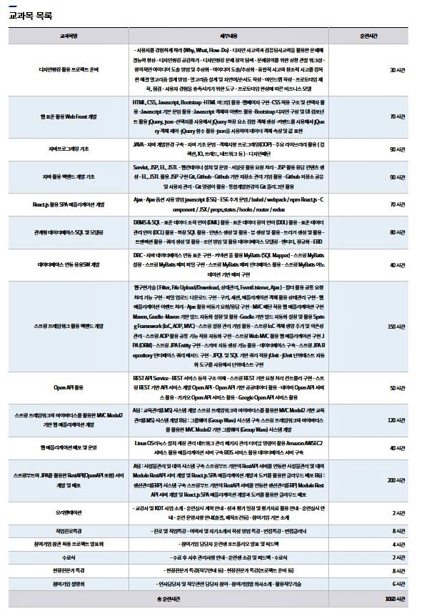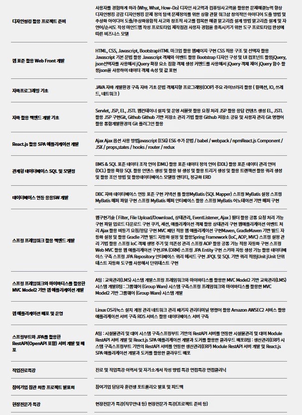 - 웹 프론트엔드, 백엔드 프로그램 언어와 기술 습득을 통한 전문 개발자 양성
