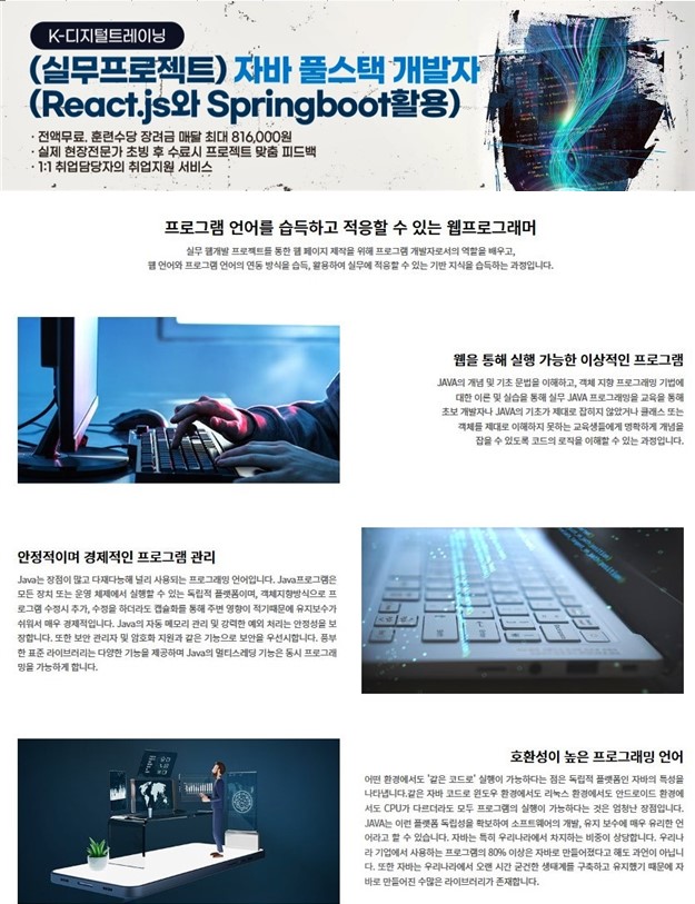 - [K디지털](실무 프로젝트기반)자바 풀스택 개발자(React/Springboot/Cloud 배포) 취업과정