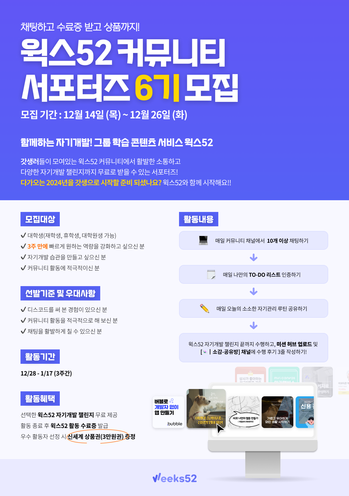 윅스52 디스코드 커뮤니티 서포터즈 6기 모집