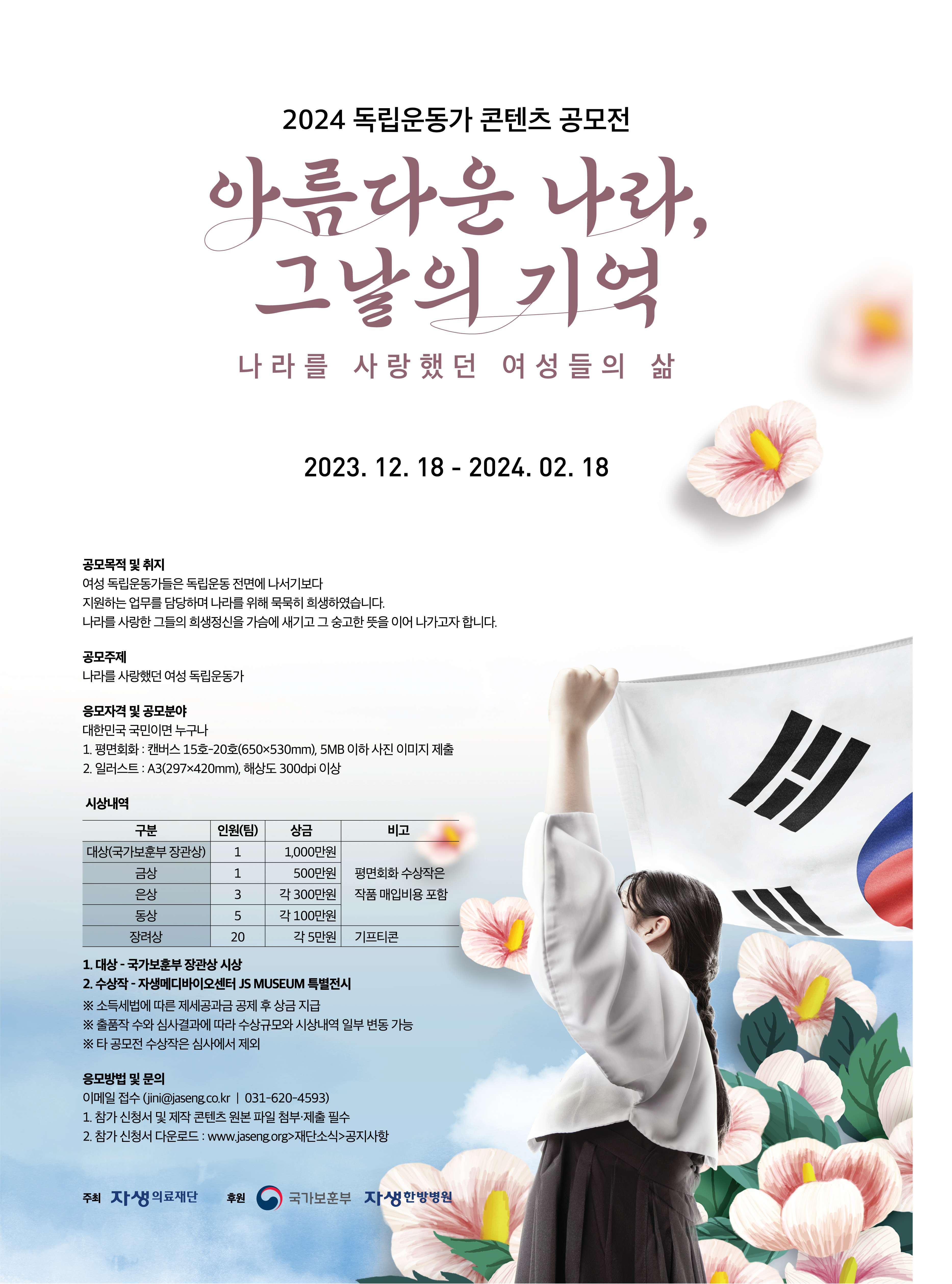 6. 응모방법 및 문의 : 이메일 접수 (jini@jaseng.co.kr/☎031-620-4593)