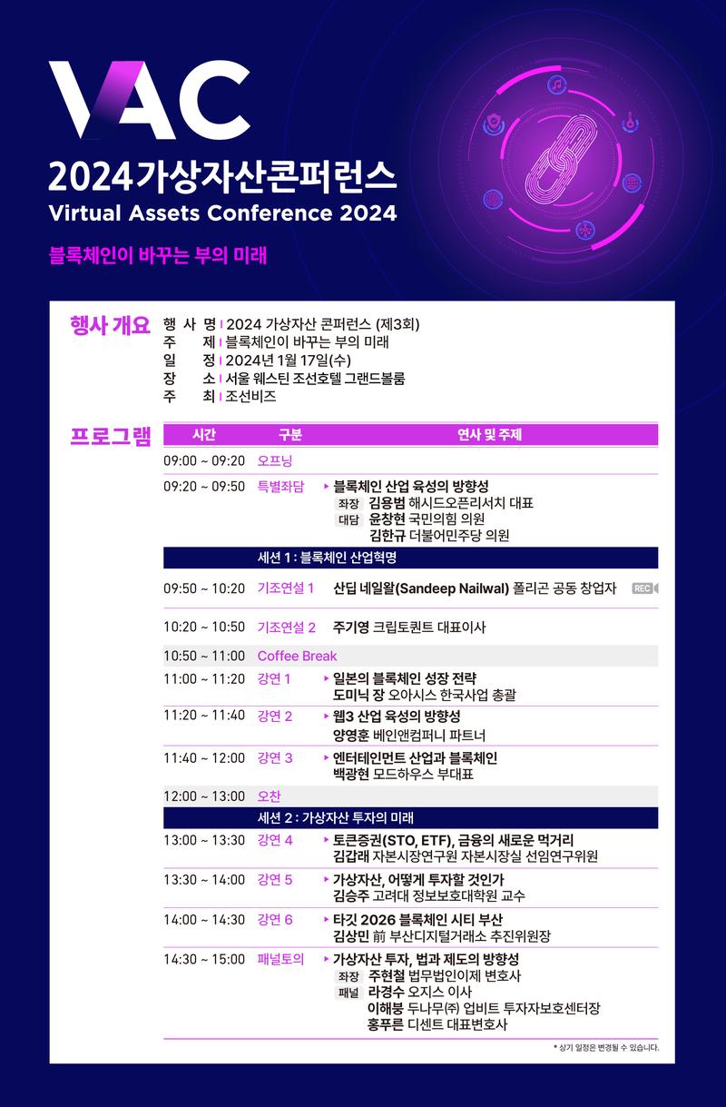 ⚡얼리버드 50%할인중⚡ 2024년 블록체인, 가상자산을 전망하는 ‘가상자산콘퍼런스’ 1/17 개최