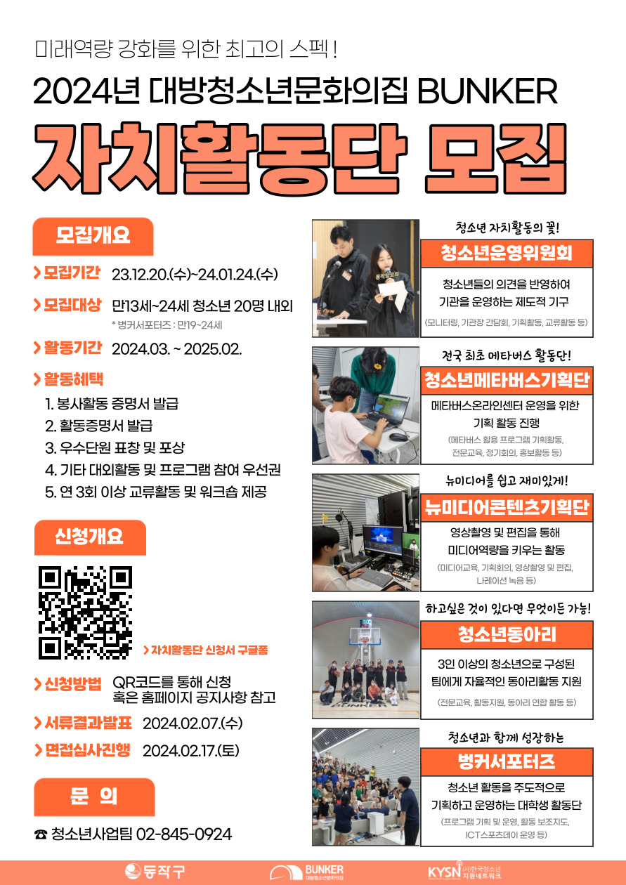 ✨2024년 대방청소년문화의집 자치활동단 신규단원 모집✨