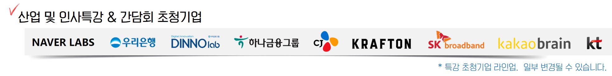 - 빅테크&대기업 실무자(DX·IT부문) 멘토 참여 (카카오, LG유플러스, 풀무원, AWS 등)