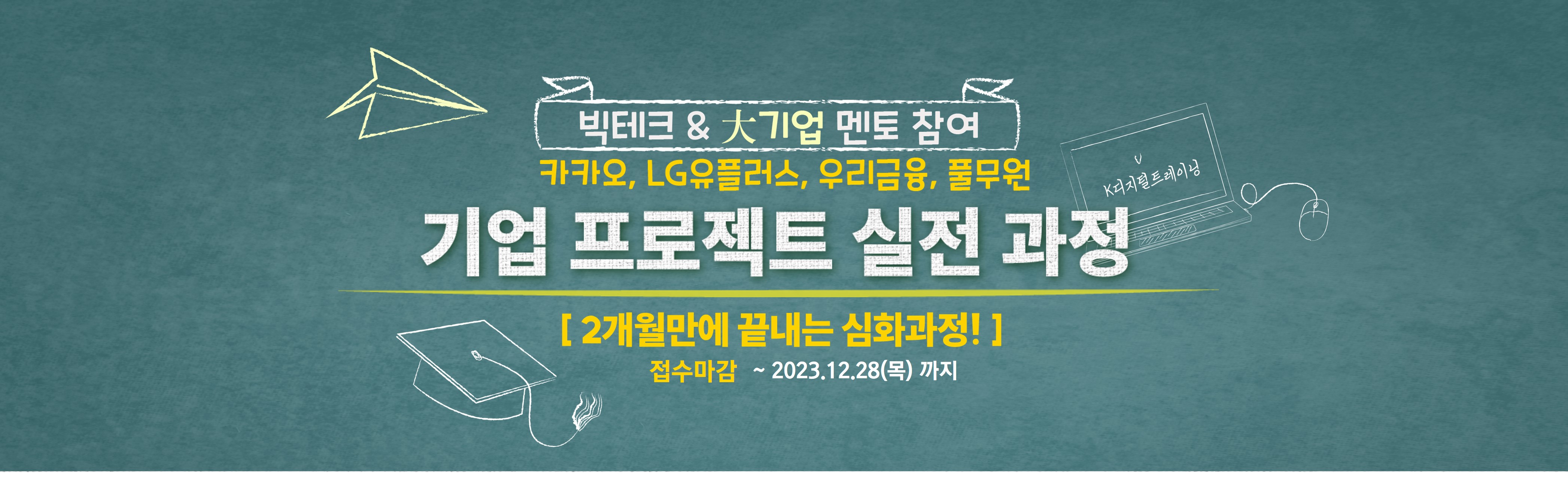 - K디지털트레이닝 또는 국·기(국가기간전략산업직종훈련) IT 관련 훈련과정 수료자 누구나