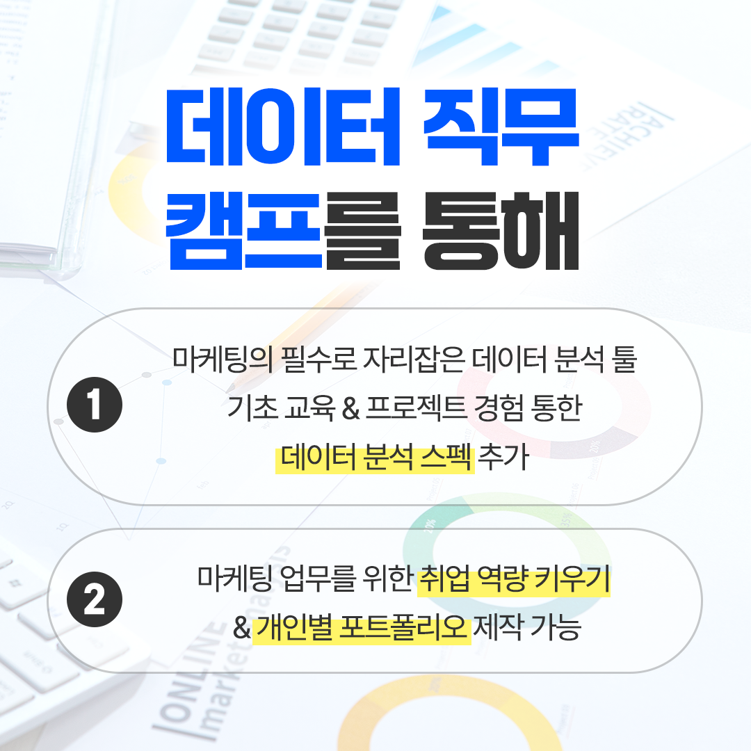 마케팅 필수로 자리잡은 데이터 분석 툴 기초 교육 & 프로젝트 경험 통한 데이터 분석 스펙 추가