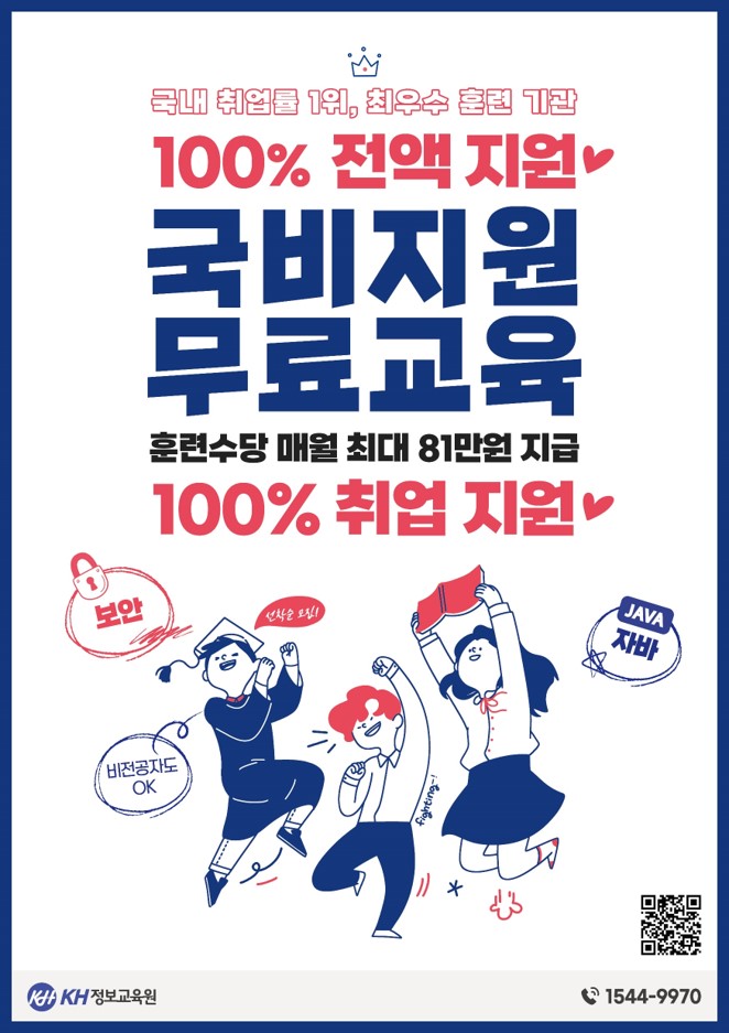 국비지원 무료교육으로 공부하고, 수료 후 6개월 취업지원 까지 받아보시기 바랍니다!