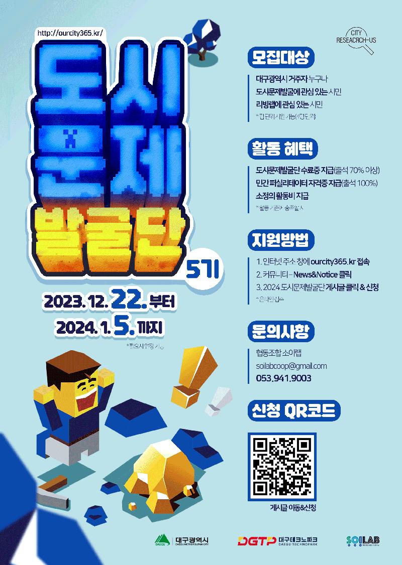 [2024 대구 도시문제발굴단 5기 시티 리서쳐스(City, Research, Us) 모집]
