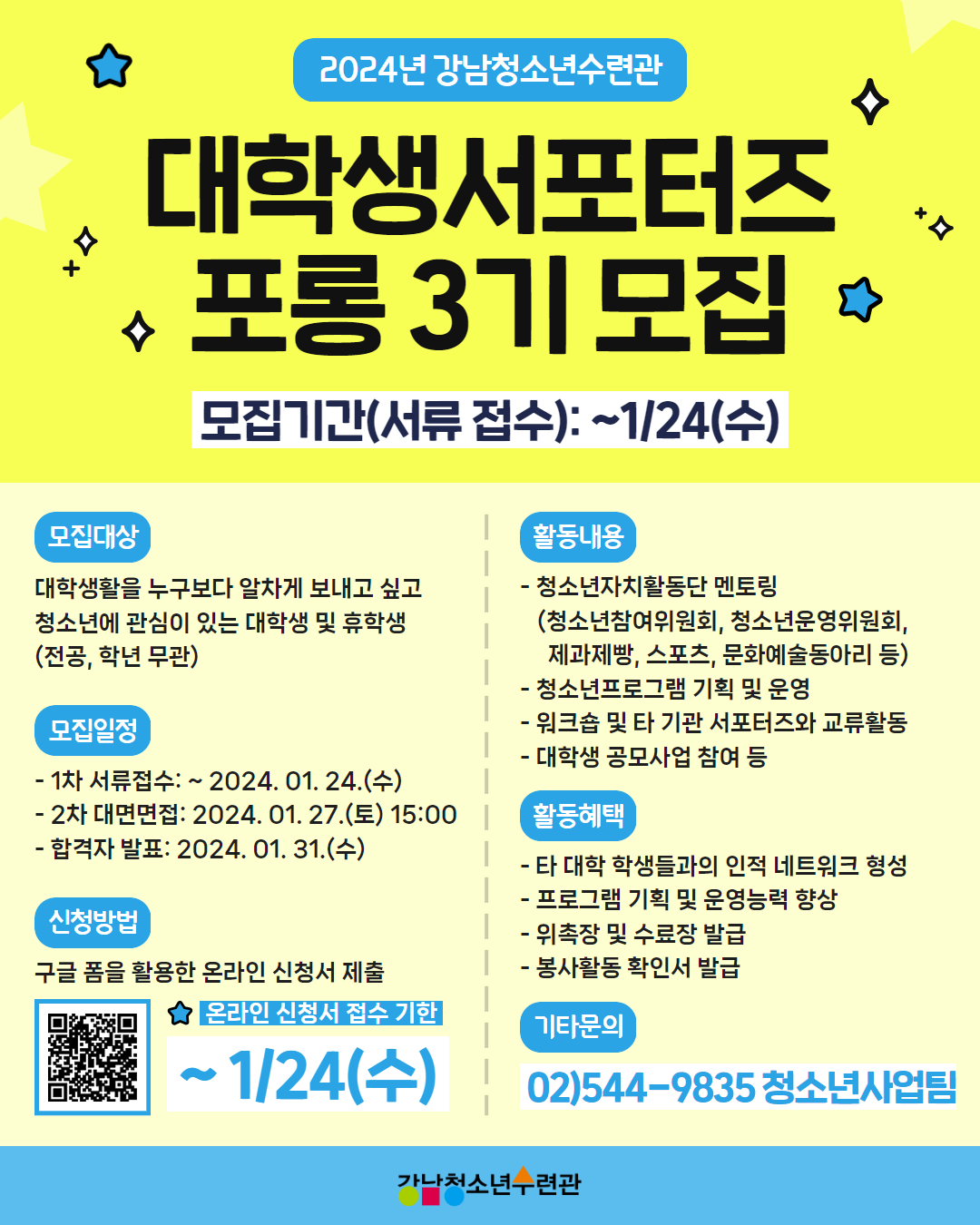 문의사항: 02)544-9835 강남청소년수련관 청소년사업팀