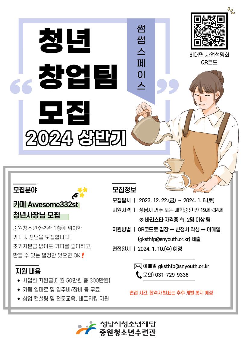 ★ 2024. 썸썸스페이스 상반기 청년창업팀(카페분야) 모집 공고 ★