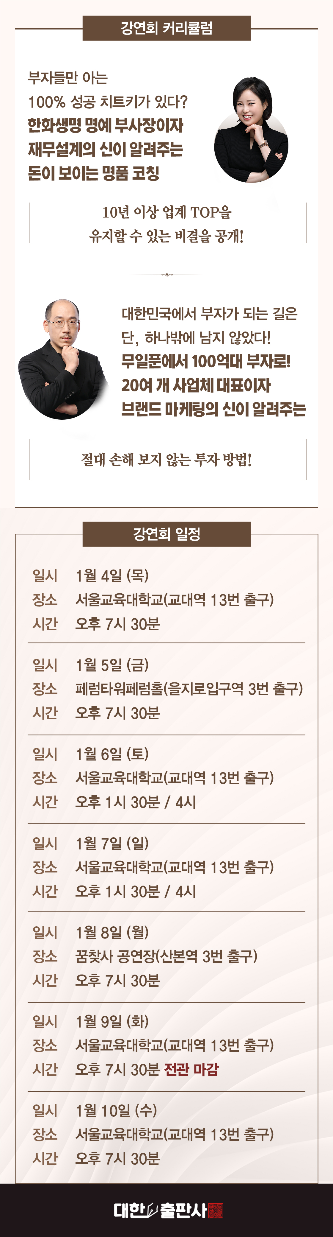 1/4~1/10일 단 7일간의 강연, 놓치지 마세요!!