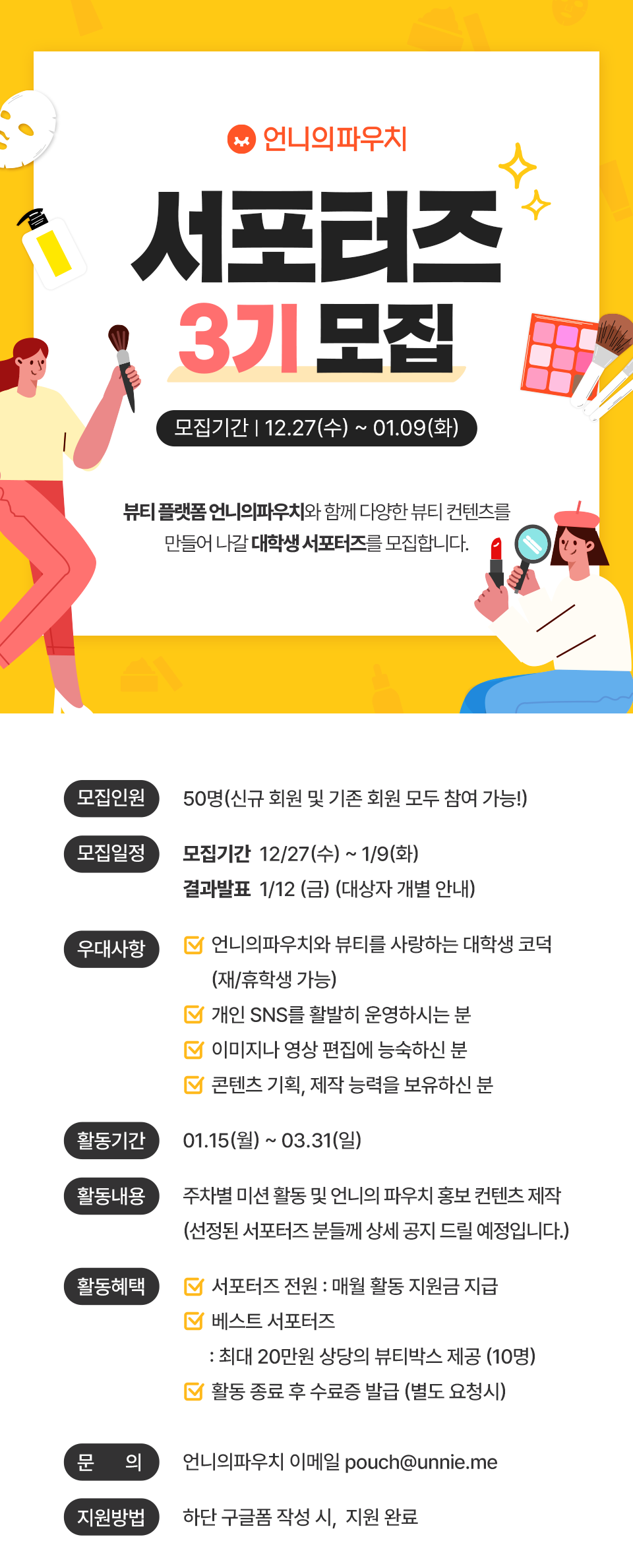 언니의파우치를 널리 알려줄 언니의파우치 서포터즈 3기를 모집합니다!
