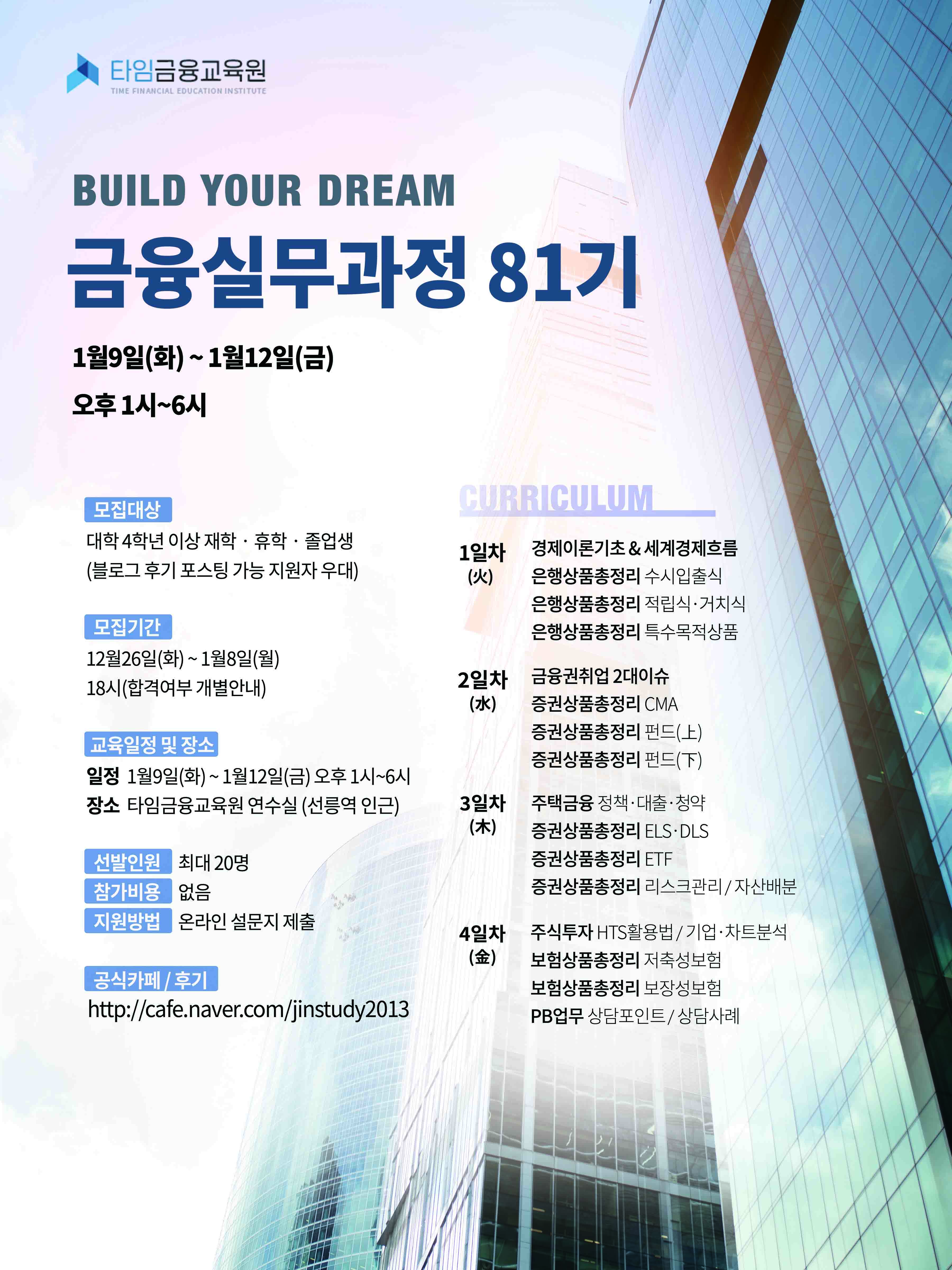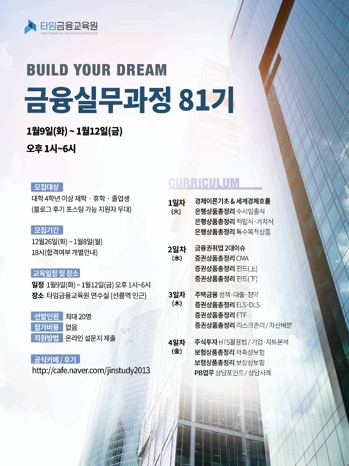 - 장소 : 타임금융교육원 연수실 (선릉역 5번 출구, 테헤란로 311 아남타워)