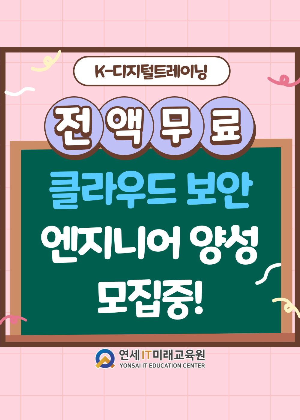 #클라우드보안 #네트워크 #화이트해커 #IT정보보안 #정보보안 #코딩 #클라우드보안국비지원 #국비지원컴퓨터학원 #수원컴퓨터학원 #IT국비지원 #모의해킹 #네트워크보호 #사이버공격 #보안교육 #코딩학원 #KDT #내일배움카드 #연세IT미래교육원 #국비교육 #취업준비 #정보처리기사 #보안 #해킹 #리눅스 #화이트해커