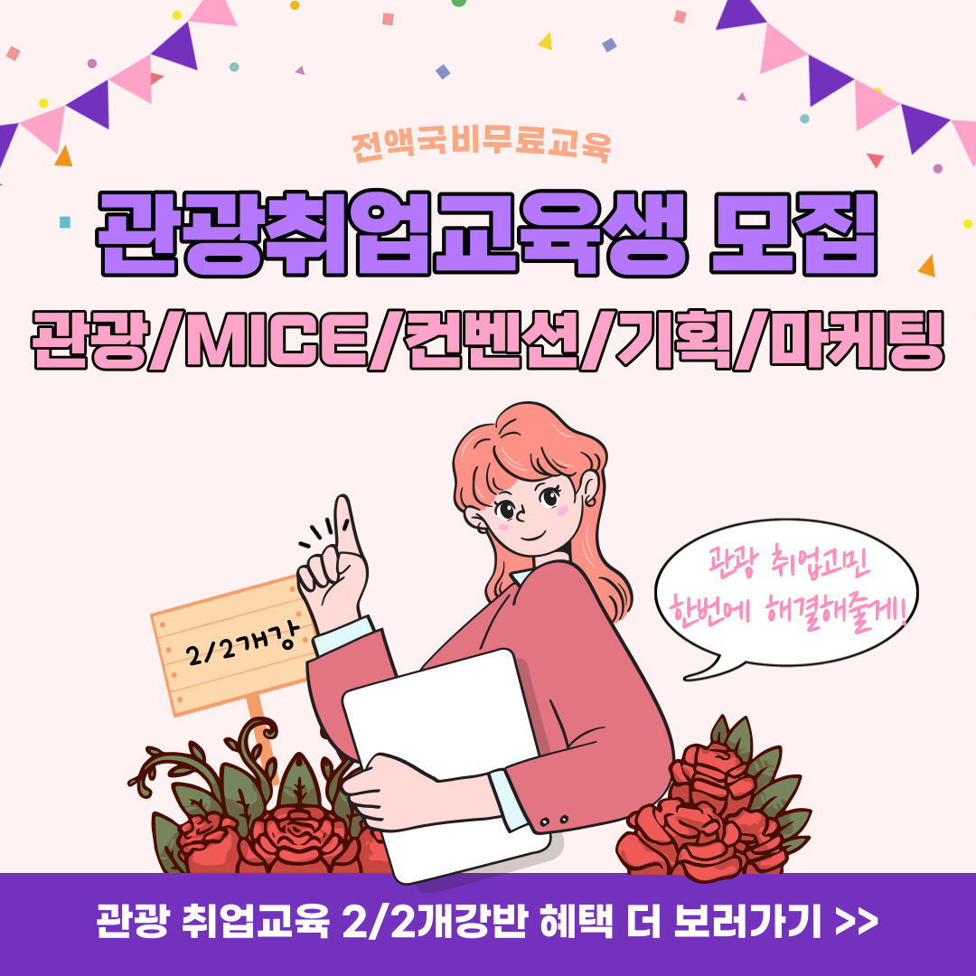 ✔️관광마케팅/국제회의·컨벤션/여행상품개발 등 실무 위주의 교육 제공!