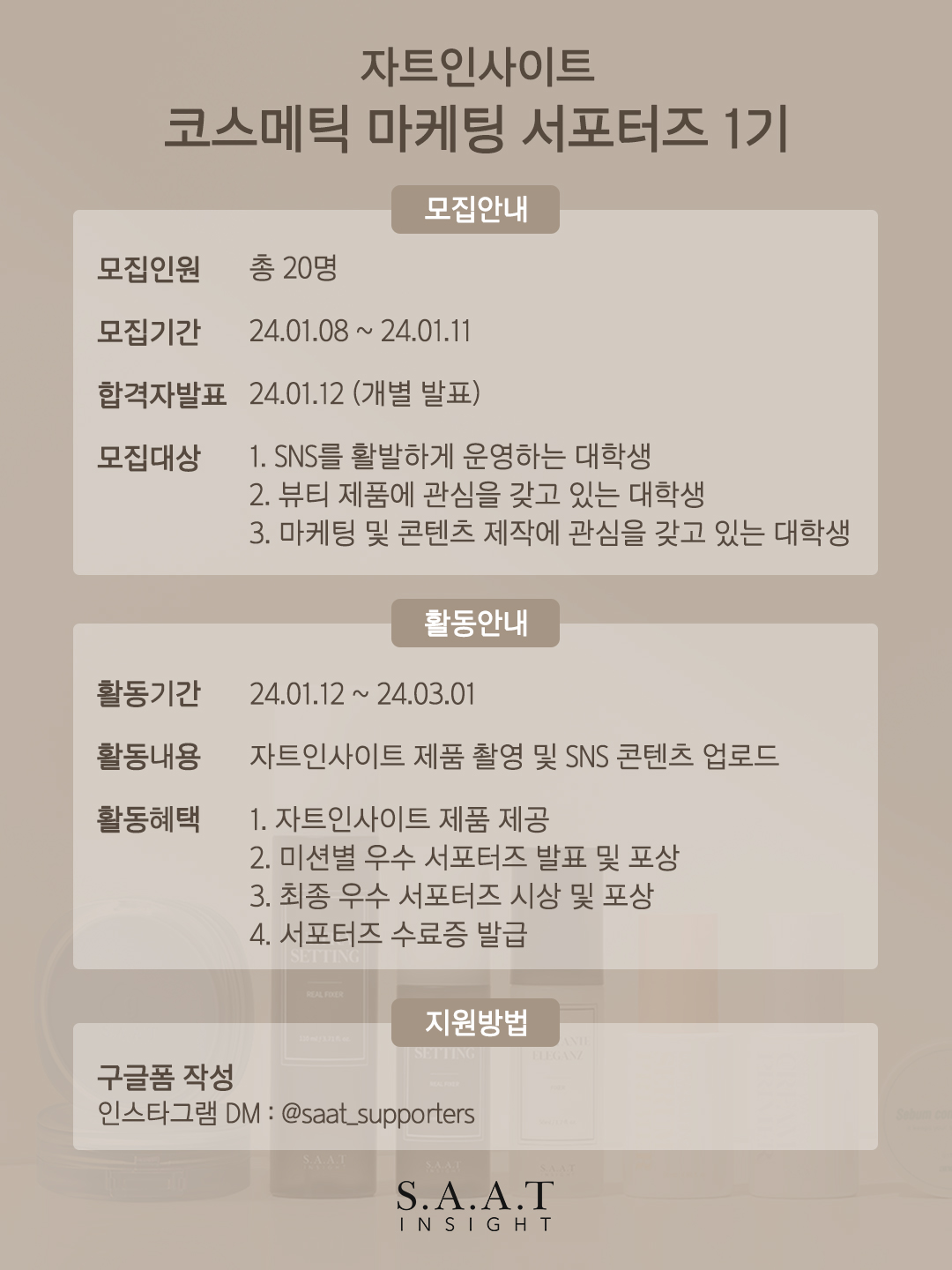 활동내용: 자트인사이트 제품 촬영 및 SNS 콘텐츠 업로드