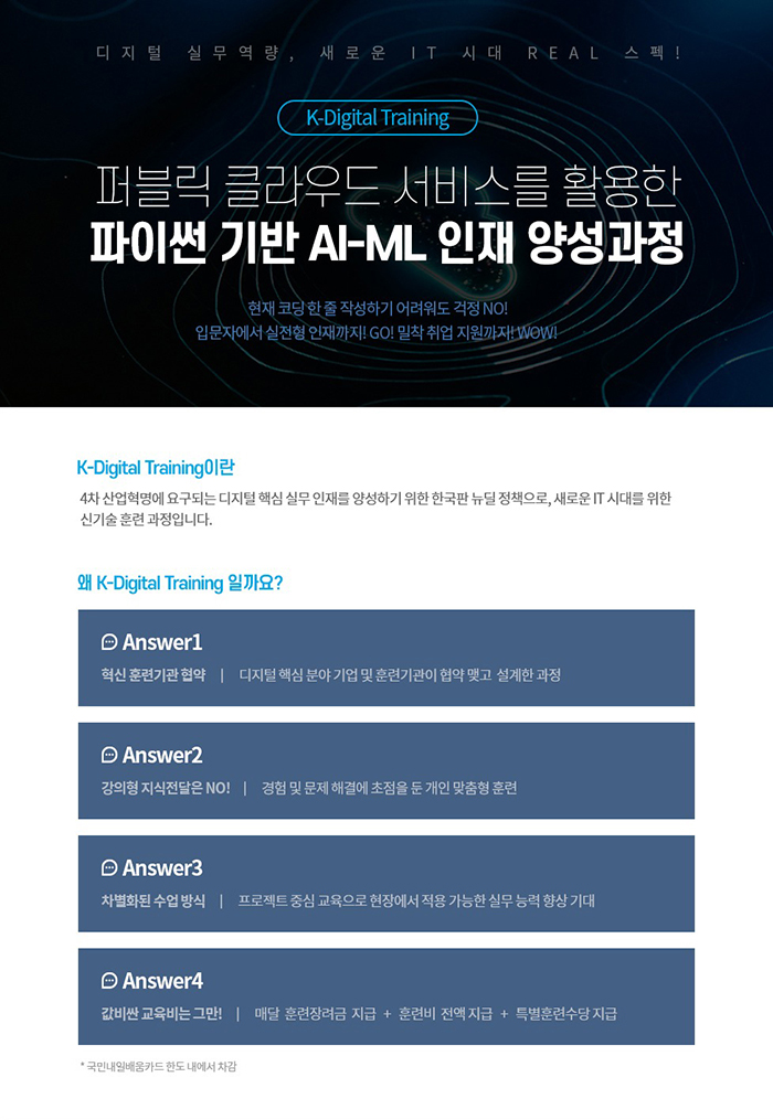 과정명 : [K-Digital] 퍼블릭 클라우드 서비스를 활용한 파이썬 기반 AI-ML 인재 양성 과정