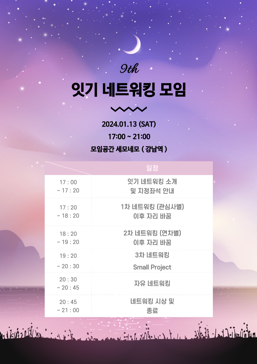- 날짜 : 1월 13일 (토) 17시 ~ 21시