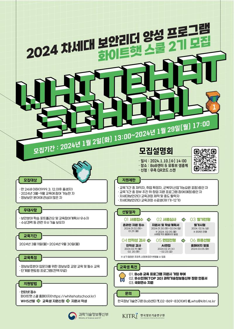 나. 접수 방법 : 화이트햇 스쿨 홈페이지(https://whitehatschool.kr) 온라인 지원 접수