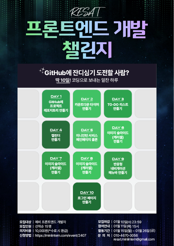 ▷활동명 : RESAT 프론트엔드 개발 챌린지 7기 (주최: 오픈놀)