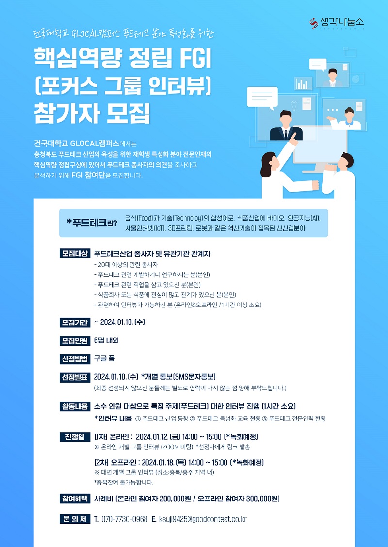 건국대학교 GLOCAL캠퍼스 푸드테크 분야 FGI(포커스 그룹 인터뷰) 참가자 모집
