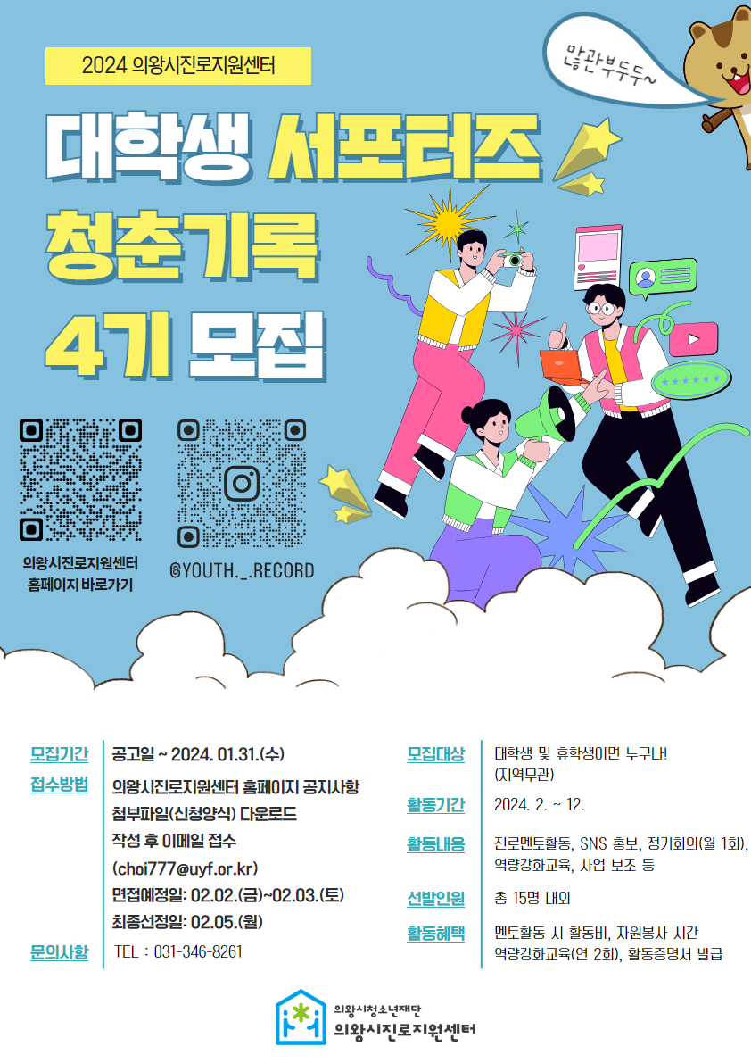 2024 의왕시진로지원센터 대학생 서포터즈 청춘기록 4기 모집