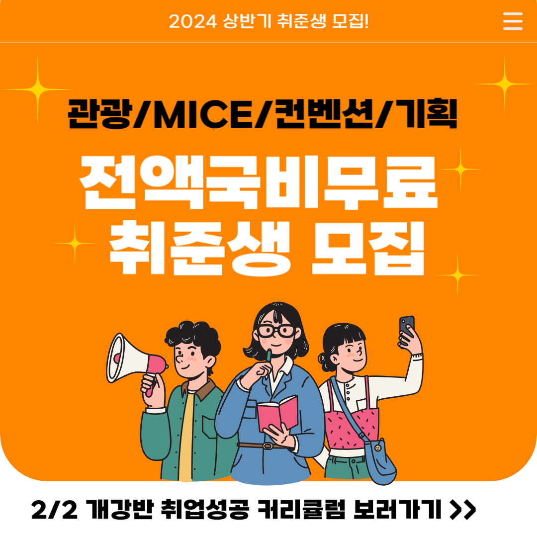 ✔️관광마케팅/국제회의·컨벤션/여행상품개발 등 실무 위주의 교육 제공!