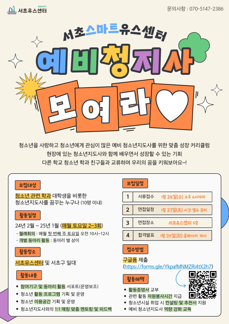 2024년 서초스마트유스센터 예비 청지사 모여라♥