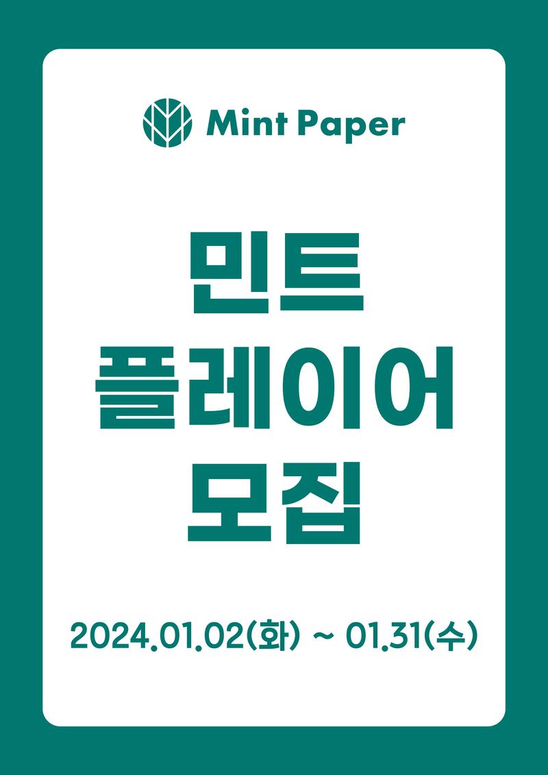민트페이퍼와 2024년을 함께할 민트플레이어를 모집합니다.