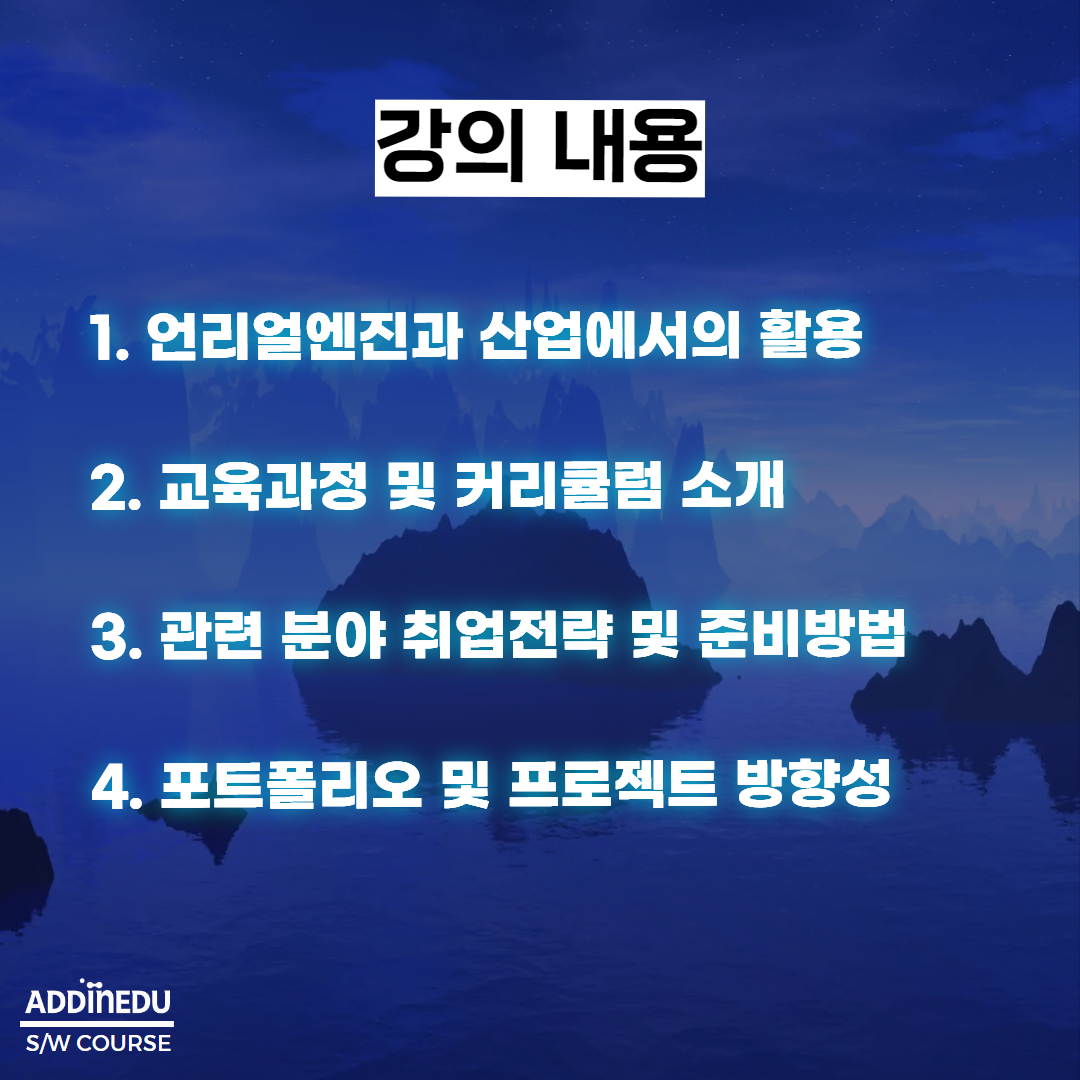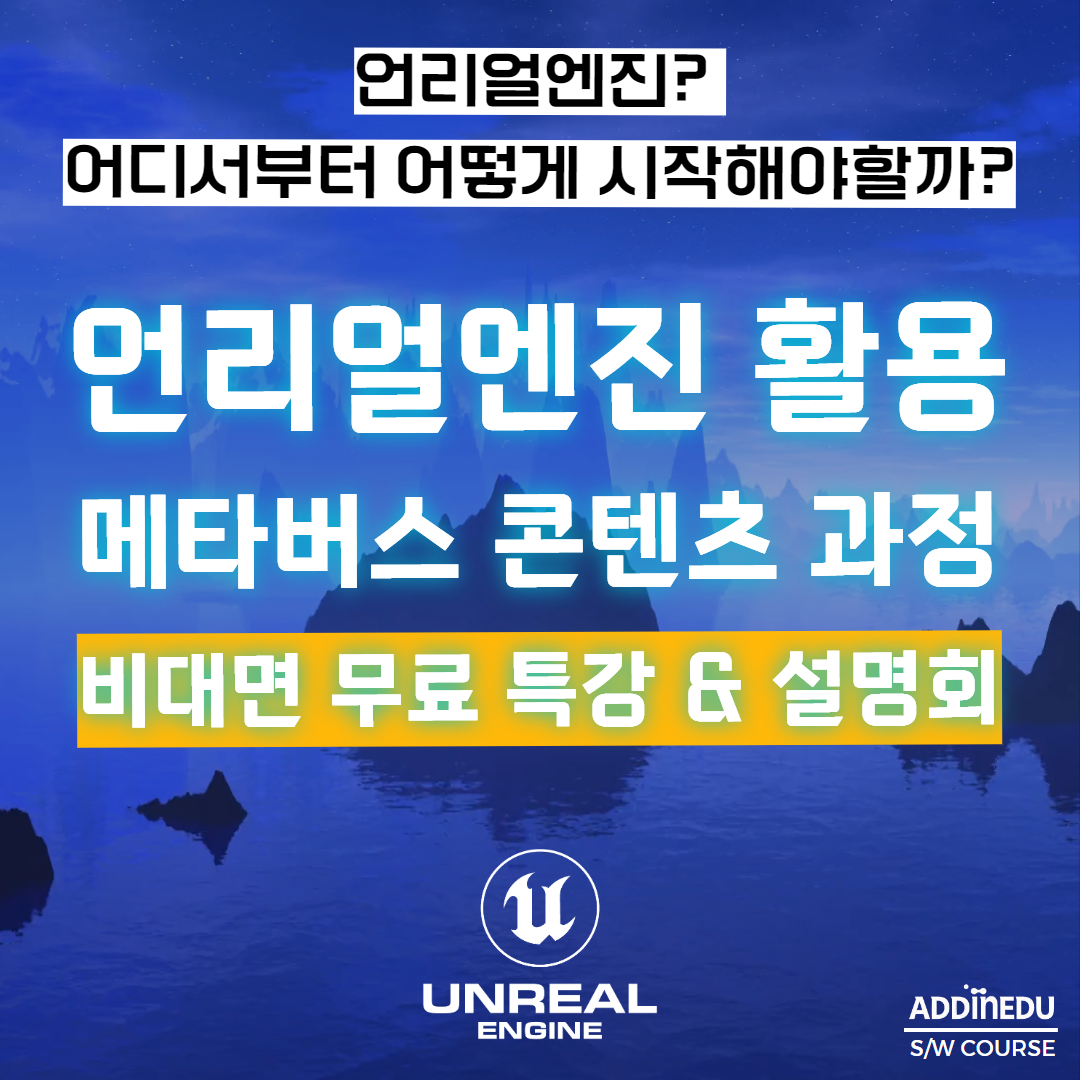 언리얼엔진과 게임개발에 관심이 있는 취준생을 위한 무료 세미나를 진행합니다.애드인에듀에서 진행하는 [KDT_언리얼엔진을 활용한 메타버스XR 콘텐츠 과정]에 대한 대표강사님의 설명회와 관련 분야로의 취업을 위한 특강이 진행될 예정입니다.많은 참여바랍니다.