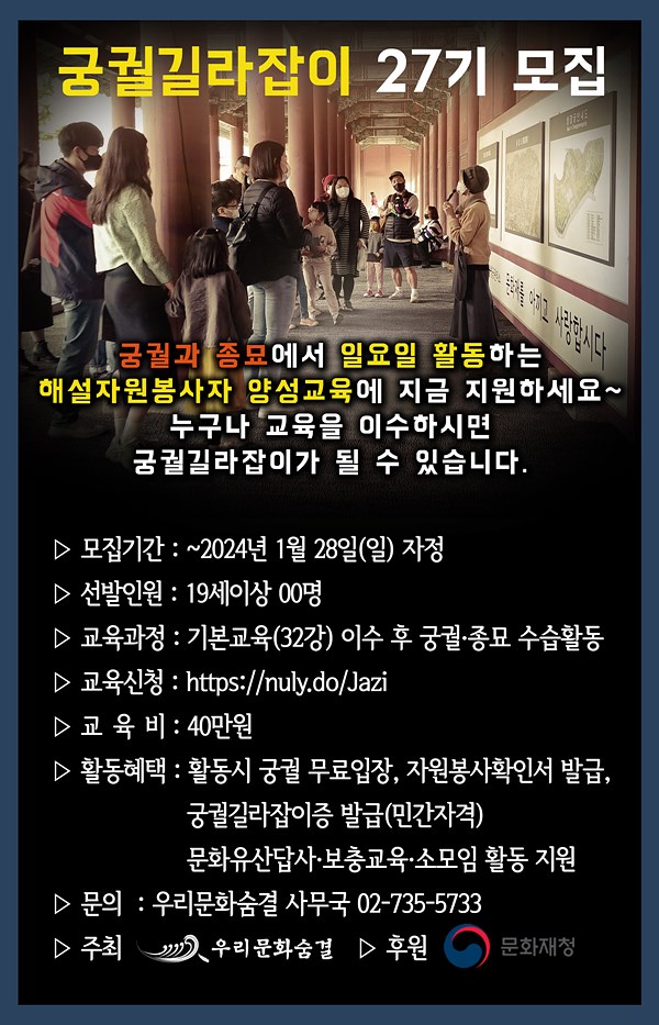 궁궐길라잡이 27기 교육생 모집 (일요일 활동)