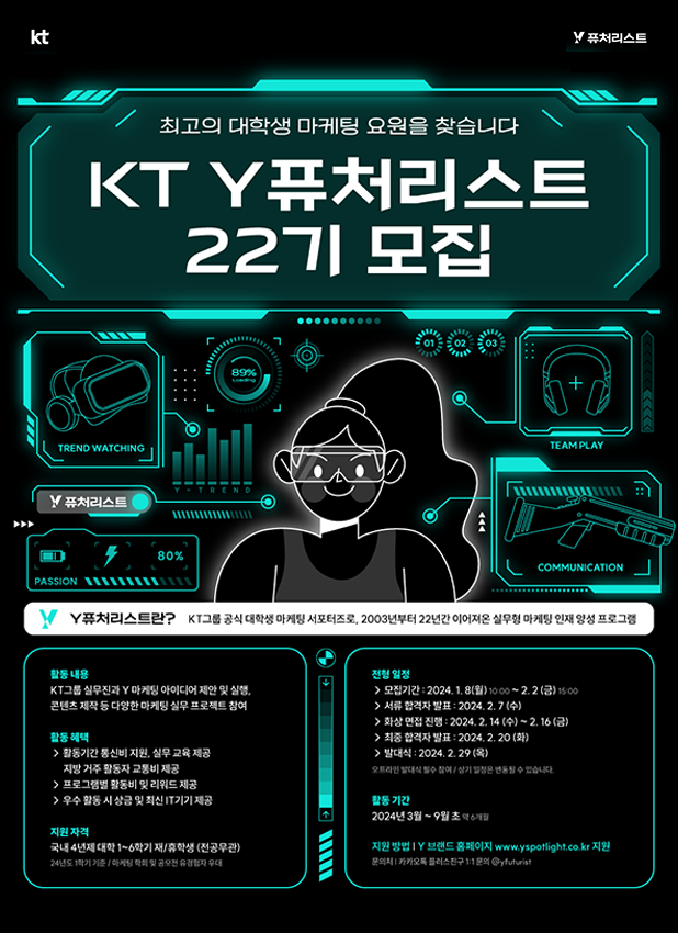 KT 서포터즈 'Y퓨처리스트 22기'를 모집합니다.