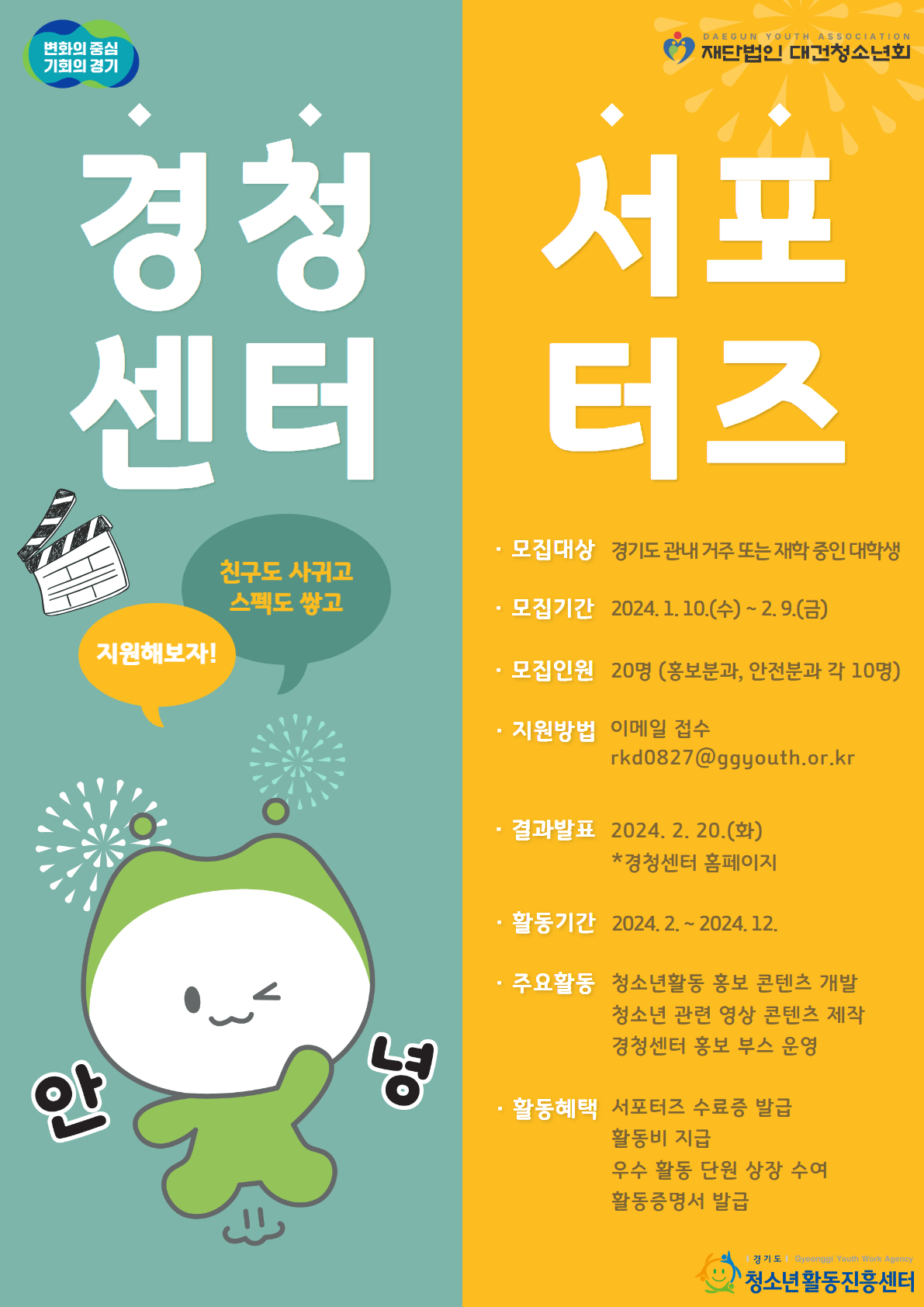 결과발표 | 2024. 2. 20.(화) 경청센터 홈페이지 발표 (www.ggyouth.or.kr) |