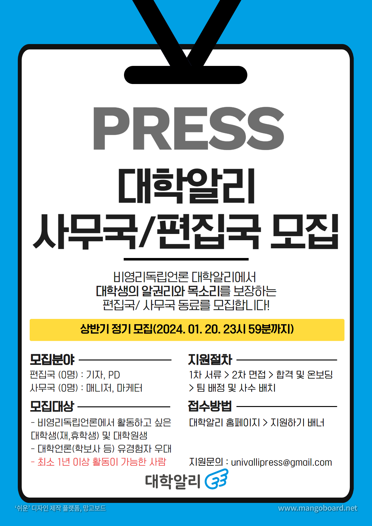 *휴학생, 재학생 무관. 대학언론 유경험자 우대