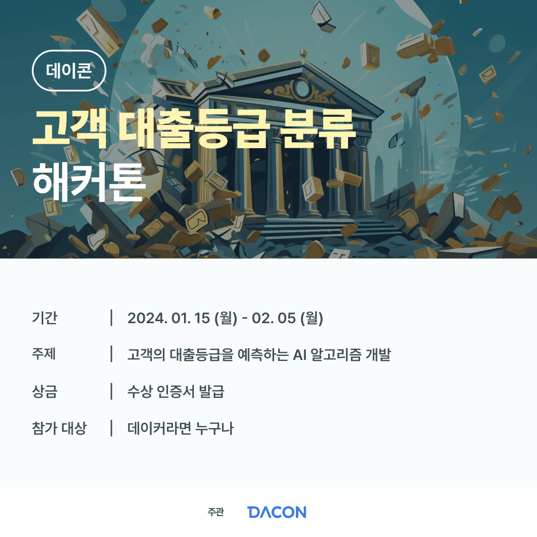 - 주최 및 주관: 데이콘([dacon@dacon.io](mail to : dacon@dacon.io))