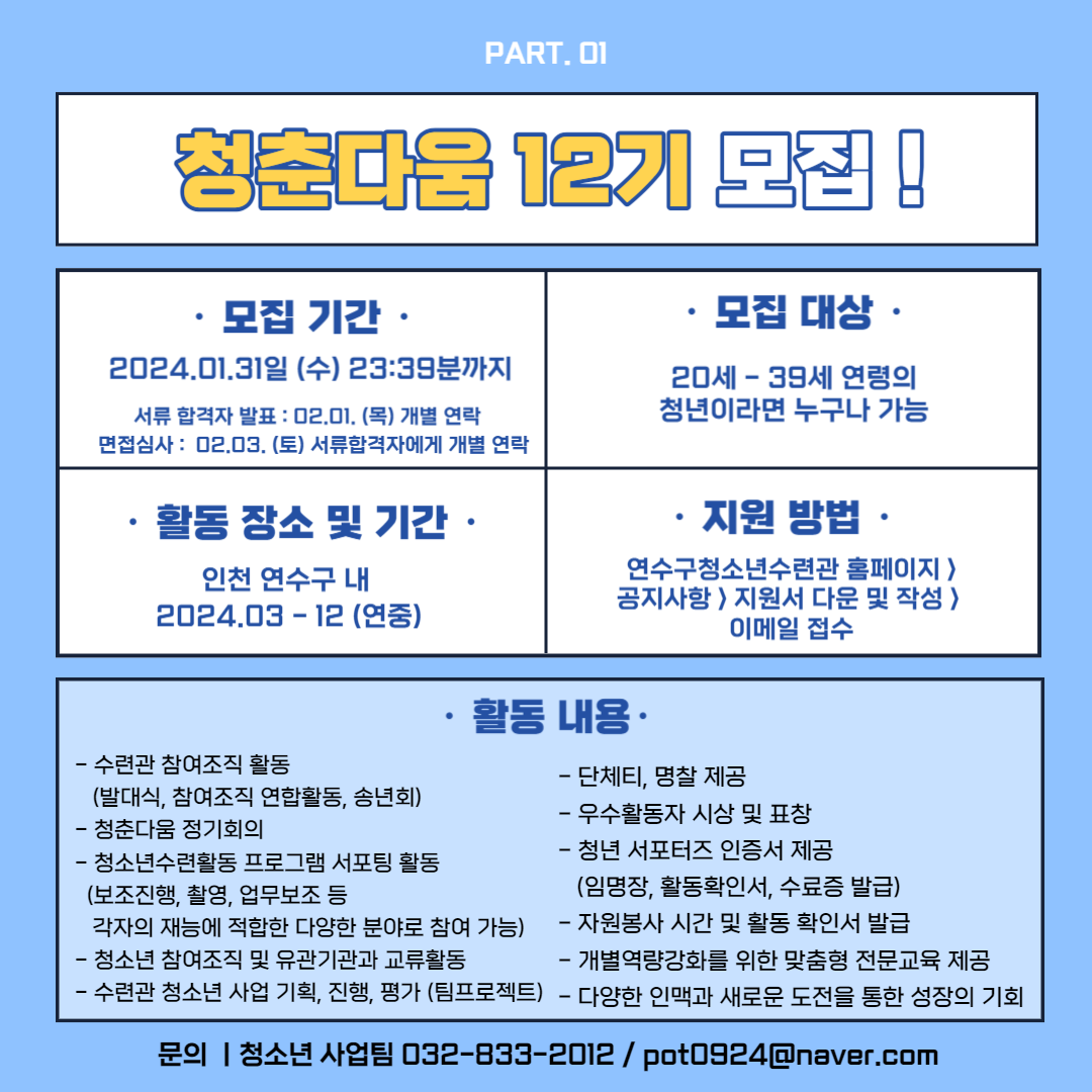 ☎ 문의: 연수구청소년수련관 청소년사업팀 032-833-2012