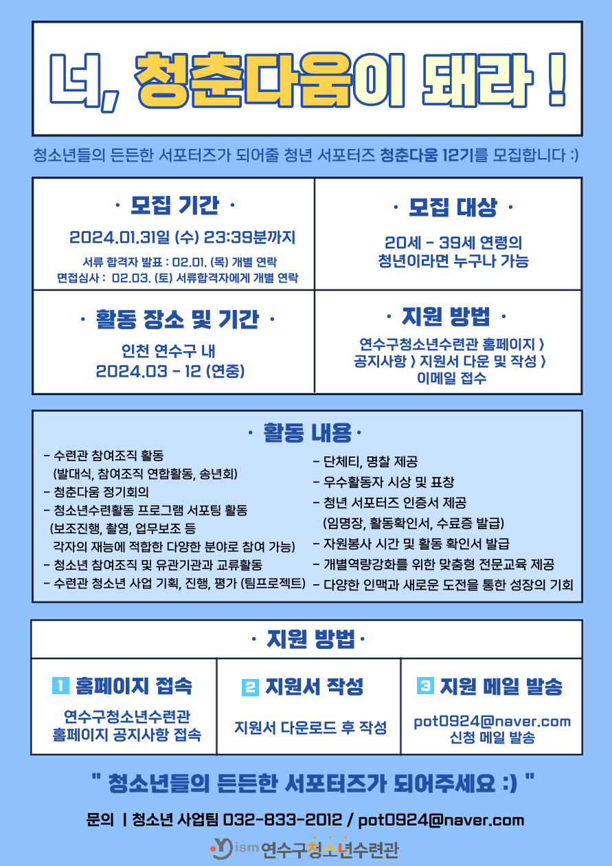 연수구 청소년들의 든든한 서포터즈가 되어주세요♡