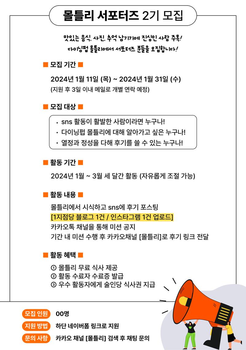 다이닝펍 몰틀리에서 [몰틀리 서포터즈]를 모집합니다.