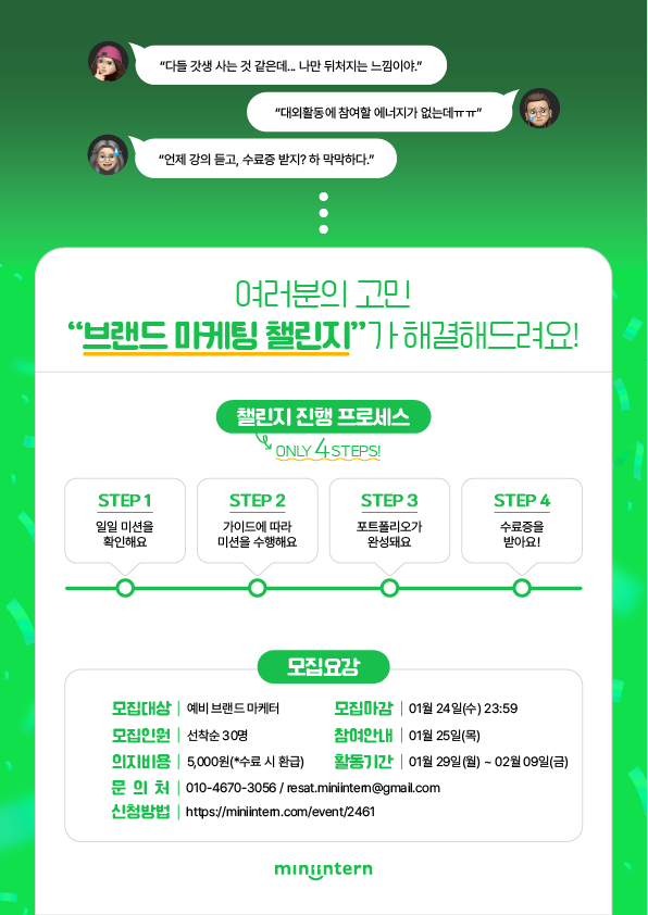 - 활동 내용 : 10일간 직무 미션 수행하고, 결과물을 인증해주세요!