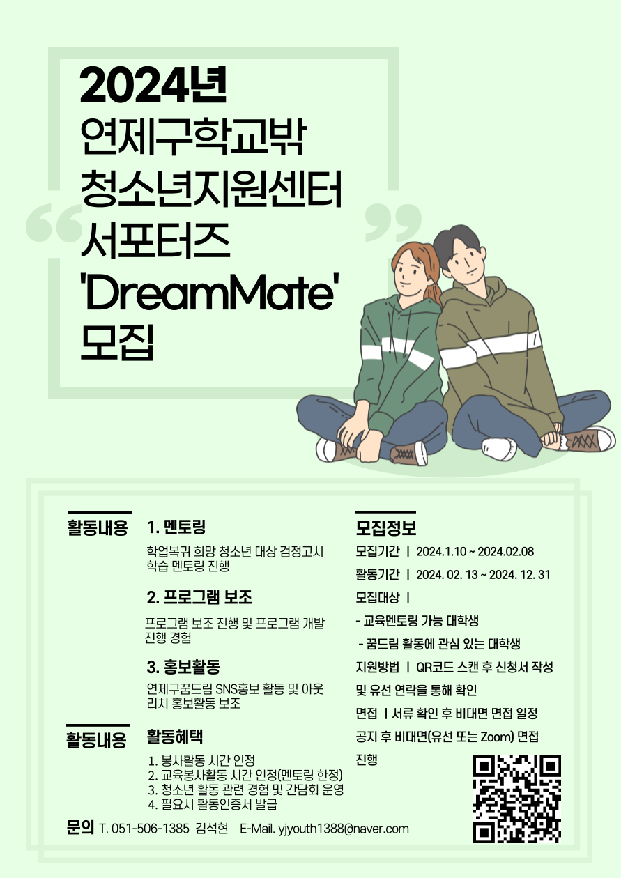 ★ 2024년 연제구학교밖청소년지원센터 서포터즈 'DreamMate' 모집★