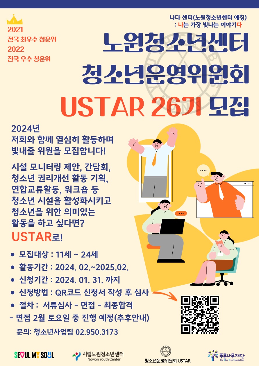 ✨2024년 시립노원청소년센터 청소년운영위원회 USTAR 26기 위원 모집✨