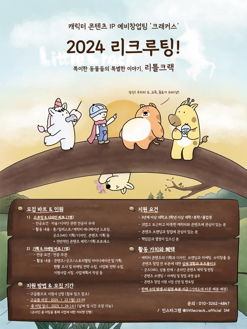 캐릭터 콘텐츠 IP 예비창업팀 '크래커스'는 보편적이지 않은 특이한 모습의 동물들이 꾸려가는 특별한 이야기 '리틀크랙(Little Crack)'이라는 캐릭터 IP를 중심으로,