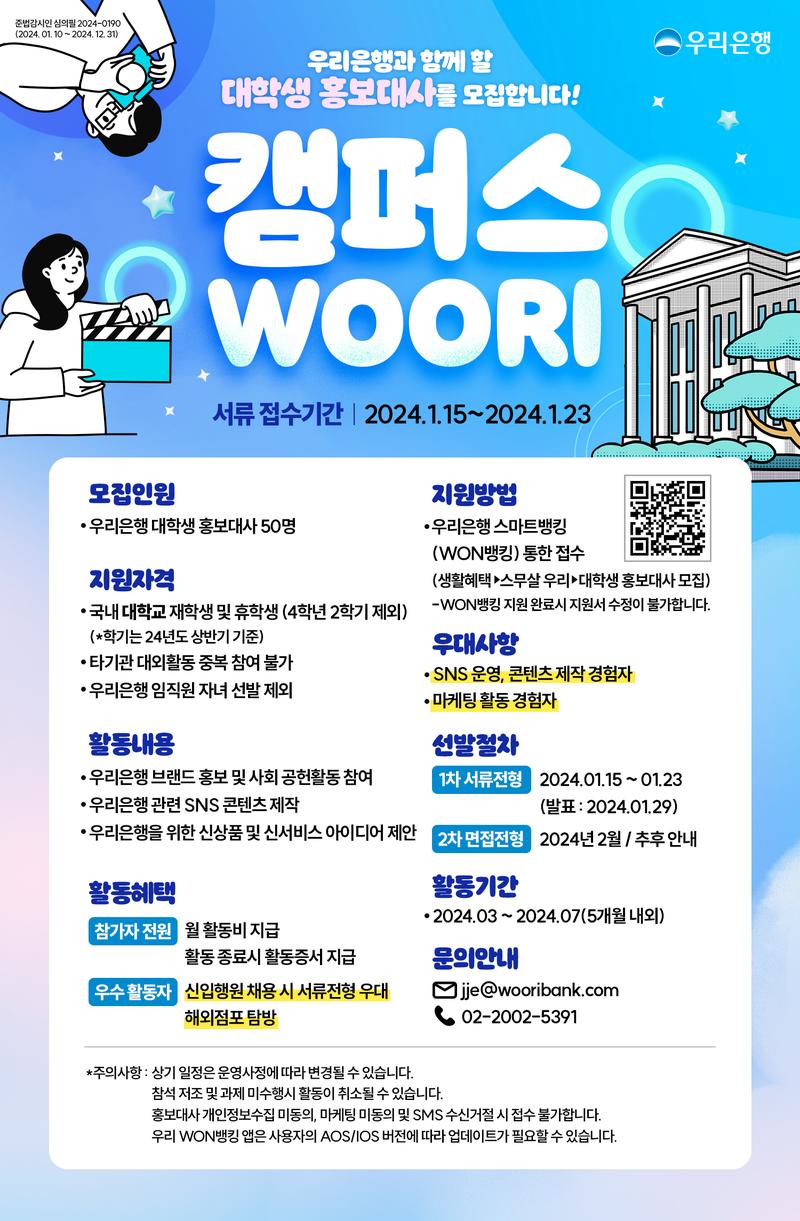 - 우리은행 대학생 홍보대사 '캠퍼스 WOORI' 모집합니다.