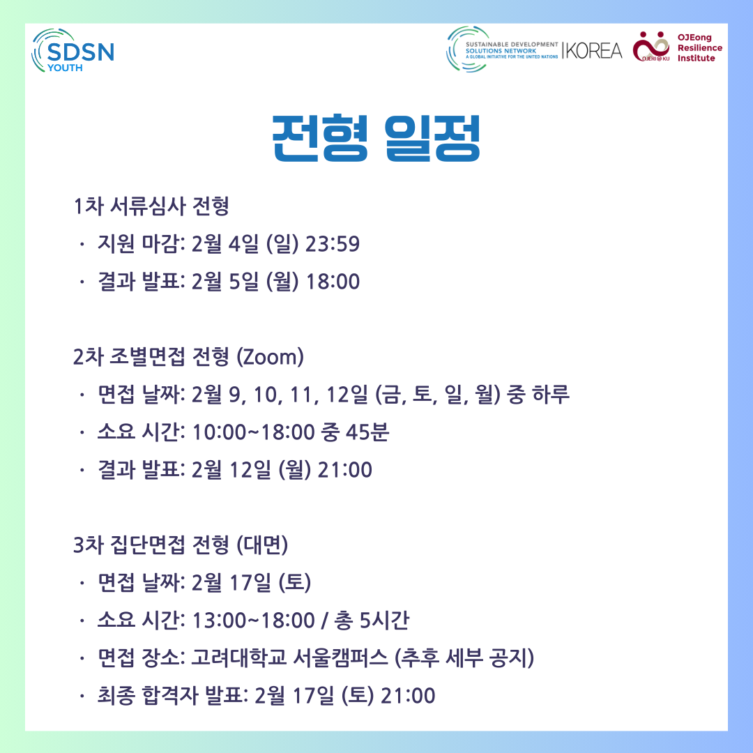 ㆍ 면접 장소: 고려대학교 서울캠퍼스(추후 세부 공지)