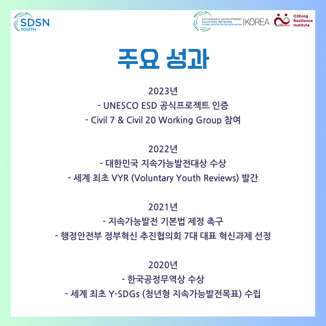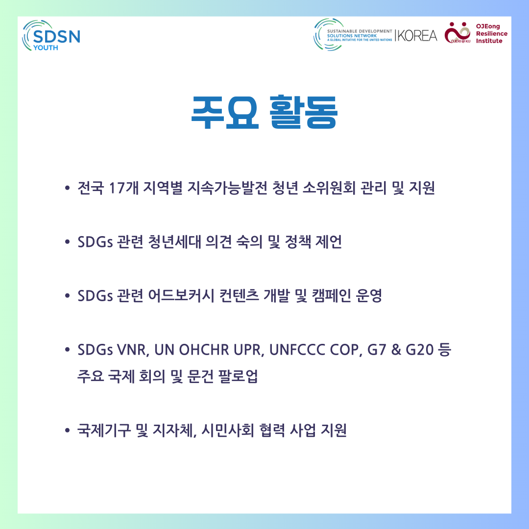 2) 전 세계의 청년들을 연결하여 생각과 경험을 공유하고 SDGs 달성을 위해 이들의 변화를 도모하는 것