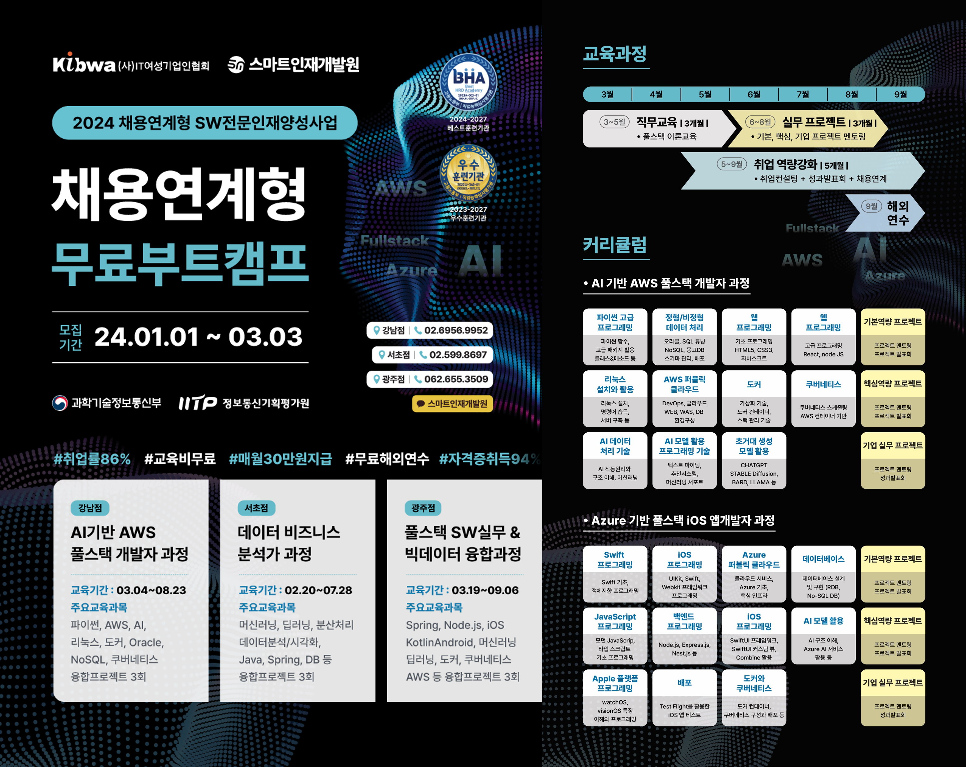◆AWS, Azure 클라우드 기반의 풀스택 AI 융합 분야 SW기업에 취업을 희망 하는 교육생을 모집합니다.