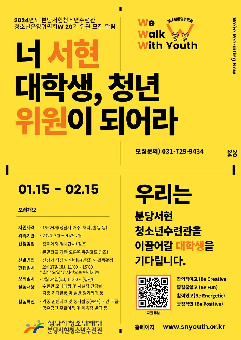 - 2월 17일(토), 시간협의 가능, 분당서현청소년수련관 2층 청소년운영위원회실(참여터)